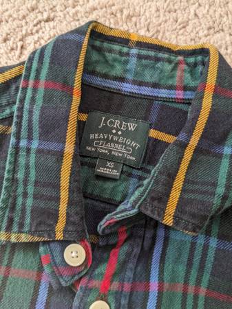 Selling a used J.Crew Men's Flannel Shirt in size XS. Asking for $10. Located in Pleasanton, near Foothill and Bernal.