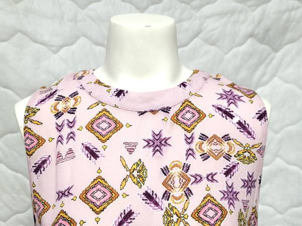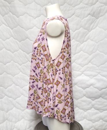 Elodie brand fun Pink Patterned Blouse is Sleeveless with a Rounded Neck that has Button & Loop closure in the back.