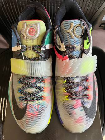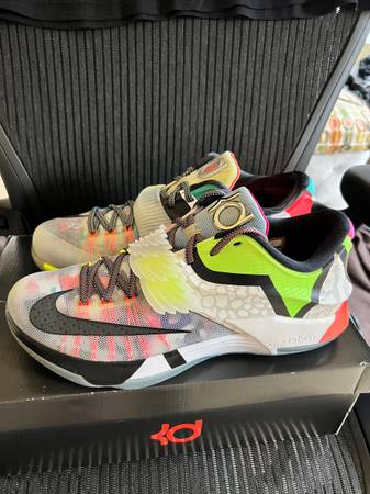 Brand new pair of Nike What The KD7s in Size 12. Dead stock. 100% Mint. Never worn. Never tried on. Never laced up. Never displayed. $300 FIRM. Can meet buyers in Livermore, Dublin, San Ramon, Danville or Walnut Creek. Thank you.
