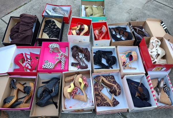 I have dozens of pairs of cute and/or hot shoes and boots for sale, for cheap, pennies on the dollar values. The catch is, that they are almost entirely size 7's, there are some 7.5's. This collection is varied in style and layers of sexy, but everything is tasty and fresh. So if you're size 7 , contact me and have a look, my prices are great and you will leave much more mysterious and provocative. I have many more shoes available than the picture suggests, many top brands ! many great styles as well, hit me up 7 ladies !