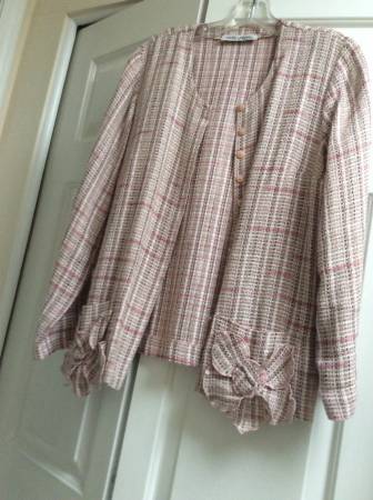 Gorgeous light blazer, buttons down. Has embroidery on front pockets. Fit size M Gently worn.