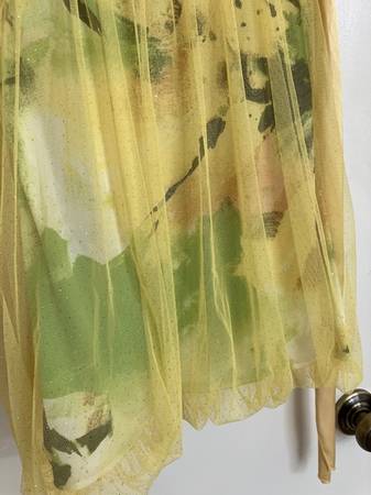 Sparkling Green and Yellow Dress Size: 2-4, Measured at 14” bust (approx.), 30” length (approx.)