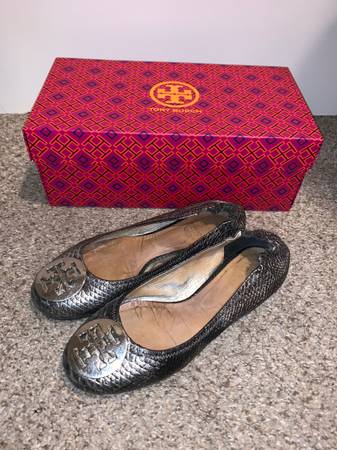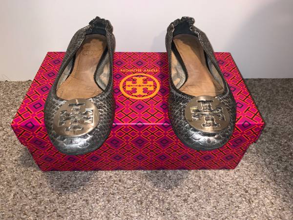 Hello! I'm selling a pair of Women's Tory Burch Reva Snakeskin-Embossed Leather Ballet Flats in Size 7. Price is firm. Pick up and Cash only please. Thanks for looking!