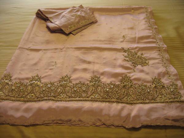 BEIGE COLOR WITH GOLD EMBROIDERY SAREE WITH STITCHED BLOUSE $69