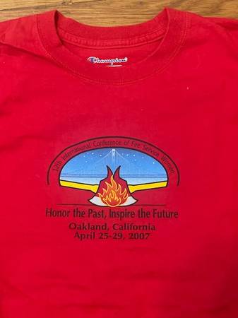 There are graphics on front and back 12th International Conference Of Fire Service Women Medium T-shirt Honor The Past, Inspire the Future The conference was in Oakland in April 25 - 9, 2007 I...
