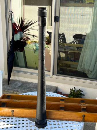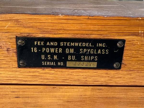 wwii us navy spy glass, telescope, monocular, with wood case. 30” long. telephone is a landline