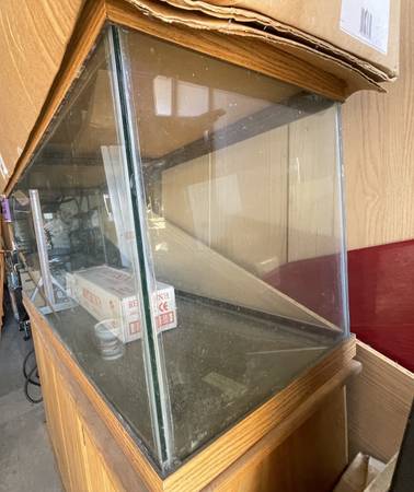 75 gal Oak Trim Glass Aquarium / Fish Tank and Solid Oak Stand / Cabinet with Natural Finish. Used in Very Good-Good Condition