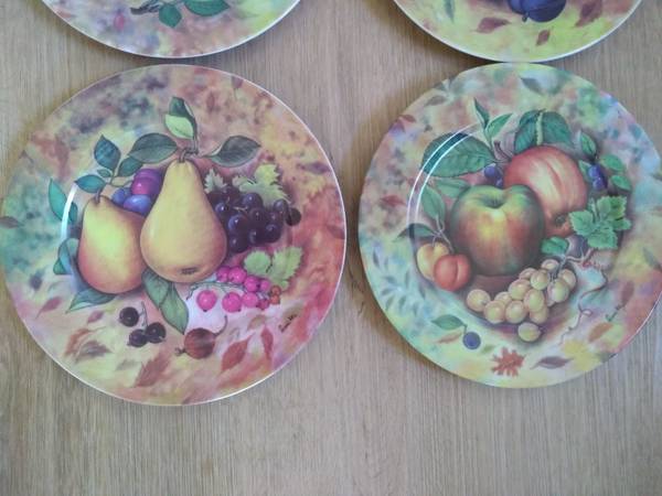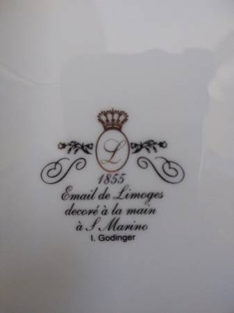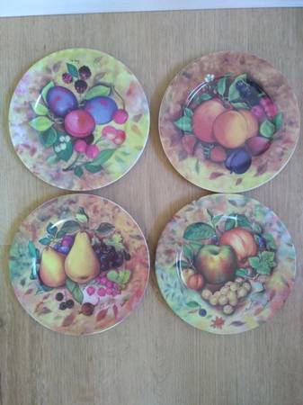 Set of 4 "1855 Email de Limoges I. Godinger" Plates in Fruits design. Vintage and collectible. New in box. Handcrafted in Italy. Plate measures 7.5" diameter