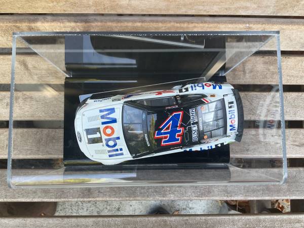 Thank you for viewing this 1/24 scale 2022 Mustang Elite model race car (driver Kevin Harvick) manufactured by Lionel Racing. Also included is a special plastic display case with a mirrored back and the race team name and Harvick’s name on the front. Includes the original box. Separately, I have a 3’ x 5’ Kevin Harvick flag/banner.
