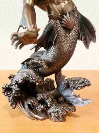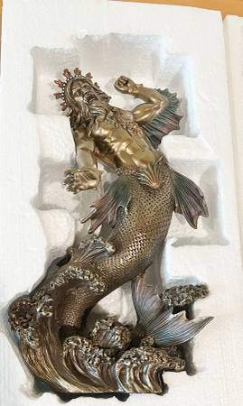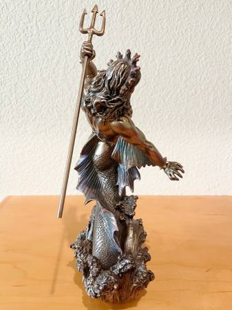 13" Poseidon God of the Sea with Trident, Greek Mythology Statue in Bronze Color. Amazing detail. Like new, in original box. Pick up in Dublin. Text 51oh 76one 4for7nein or email