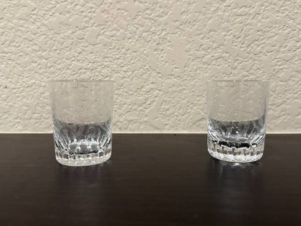 Baccarat Manhattan Crystal Shot Glasses - Pair - Brand New - Etched...