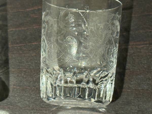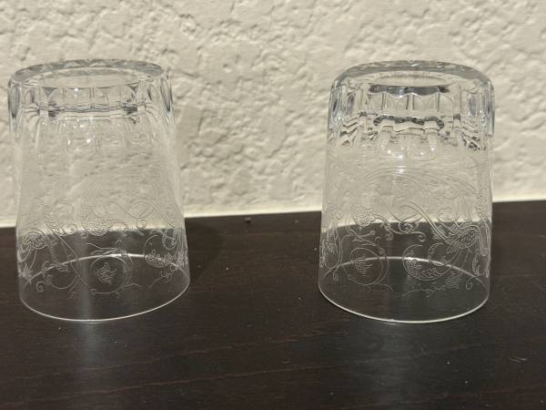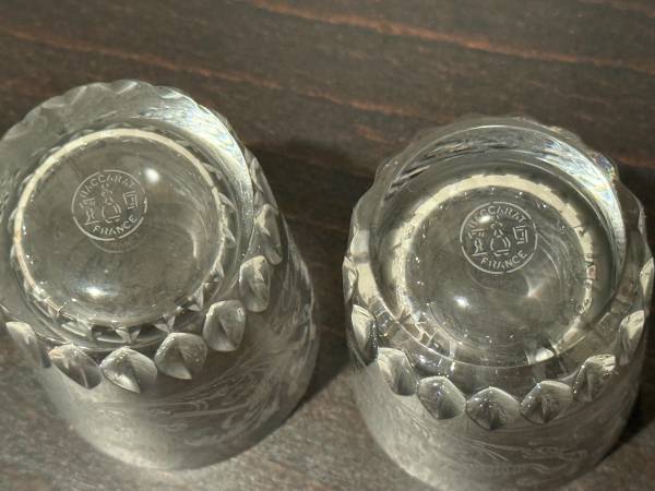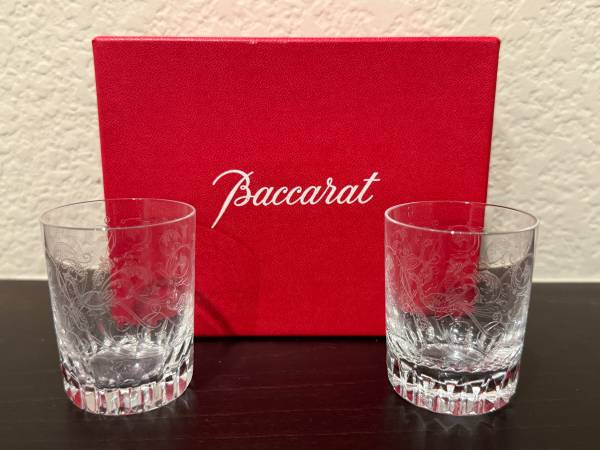 Brand New Pair of Baccarat Shot Glasses etched with an intricate design. Comes with Box and 2 Glasses. BACCARAT CRYSTAL FROM FRANCE I won them at a local school silent auction along with some Remy...
