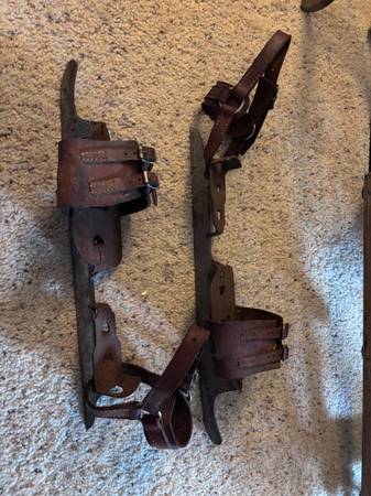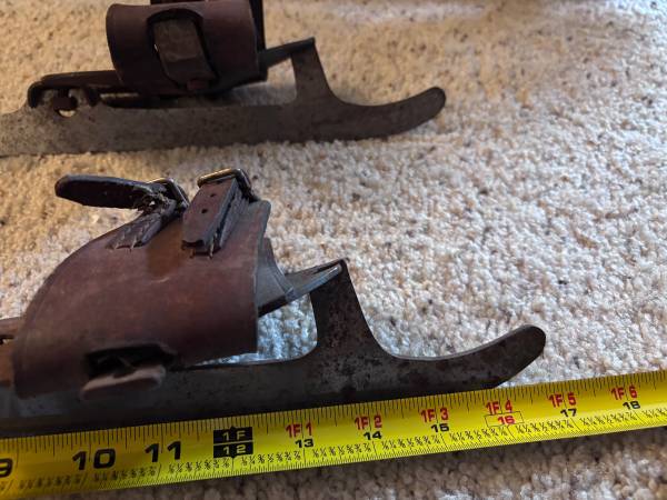 Nice decor or collectible. Antique men's ice skates. Leather traps all intact.