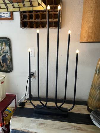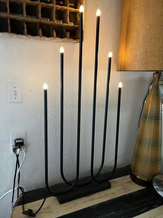 This is a gently used beautiful faux candles piece to display in your window or on your table. This metal faux candle has 6 lights and runs on 110 power with an on/off step touch button. Measures roughly 41" tall by 18" wide. See photos. If interested, please call only. Please do not text or email. Will not respond to emails or text messages. Local pick up only, no deliveries. Cash only.