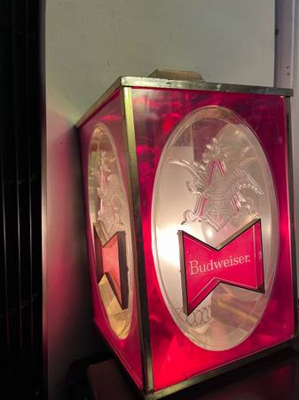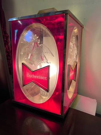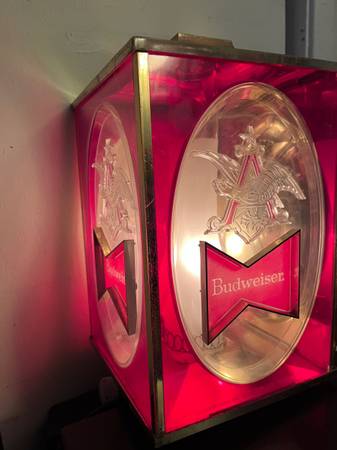 Vintage collectable 1960's Budweiser beer 4-sided rectangular light. Works. In nice shape. If interested, please call only. Don't text or email. Local pick-up cash only