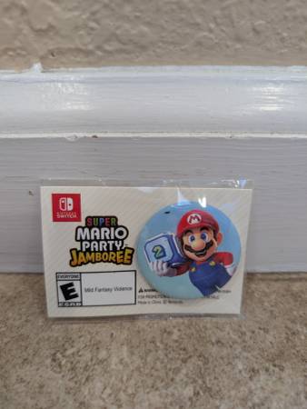 Mario Switch 2 Button Pin and Donkey Kong Bananza Bandana Description Brand New Mario Switch 2 Button Collector's Pin Donkey Kong Banaza Bandana - 20 x 20 inches Can be used as label pins