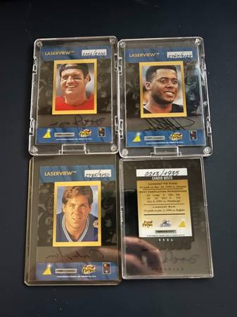 Autographed and numbered 1996 Pinnacle Laserview and 1997 Pinnacle Inscriptions cards. Players are Jeff George, Jeff Blake, and Rick Mirer