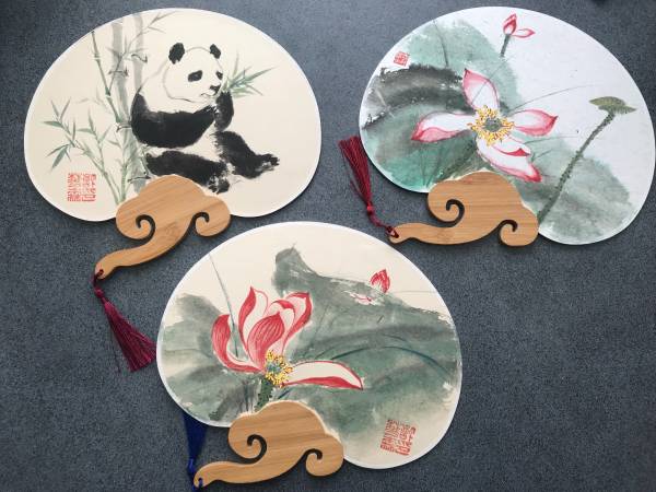 Original Ink and color hand painting on fan with artist and studio sealed. Each fan is special never can be same. This is an useful art. $20 each. Cash only. Summer fan, special gift, wedding gifts...