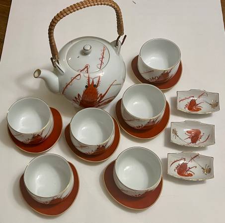 Hi. I’m selling a vintage YY Yonemotto Prawn Teapot/Cups Set with three (3) side plates. The six (6) cups come with their saucers. There were made in Japan in the 1950’s/‘60’s. There are no chips or cosmetic wear and are in lovely condition. Selling these for a friend whose mother passed away.