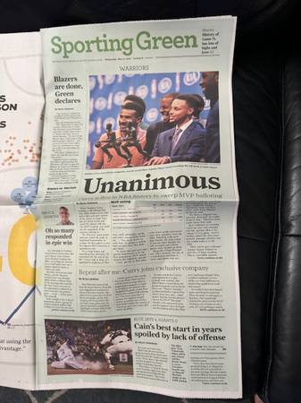 GSW 5/11/2016 Steph Curry MVP Unanimous SF Chronicle Newspaper...