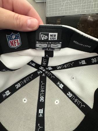 NEW NEVER WORN! SIZE: 39THIRTY M/L COLOR: WHITE INCLUDES: - (1) New Era Raiders Stretch Hat Cap 39THIRTY M/L White Never Worn
