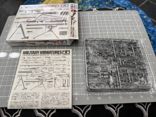 - (1) Tamiya 35121 WWII US Infantry Weapons Set 1/35 Scale Plastic Model Kit Open Box