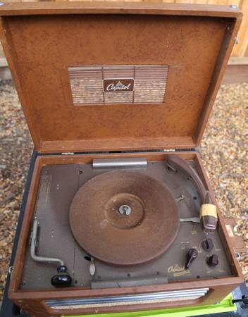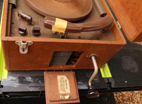 78 rpm, 3 power input, runs on AC 120v, DC (voltage?) and battery. For battery operation the motor is spring-driven, wind-up. I've owned this since the late 1940's, spent many hours as a young child listening to Little Toot, Paul Wing narrating The Little Engine that could, Hopalong Cassidy, and others.