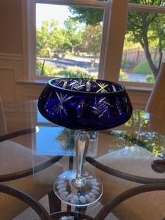 Beautiful Amethyst Crystal Dish on Pedestal with detailed design. Rich Amethyst color. Only used as a collectible. Cash only.
