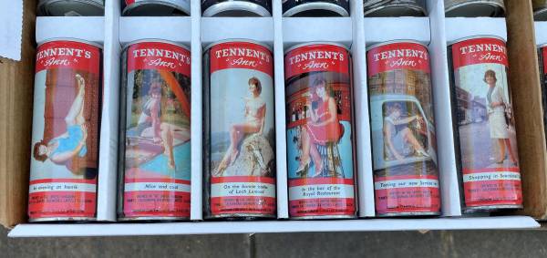 The Tennent's girl (Ann) set of 12 is from Scotland, from the 1960's and is VERY scarce. Most of these cans are in great condition, but a few are not.