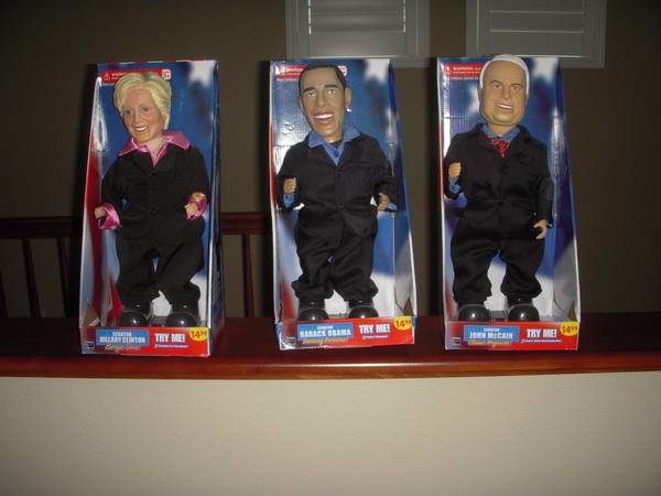 BARRACK OBAMA ELECTION DOLL (NEW) ...........................$75:00 HILLARY CLINTON ELECTION DOLL (NEW) ............................$50:00 JOHN MCCAIN ELECTION DOLL (NEW)...