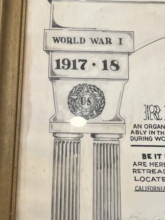 Framed certificate from "RETREADS INC," an organization for veterans who served honorably in the U.S. Armed Forces during both World War I and World War II.