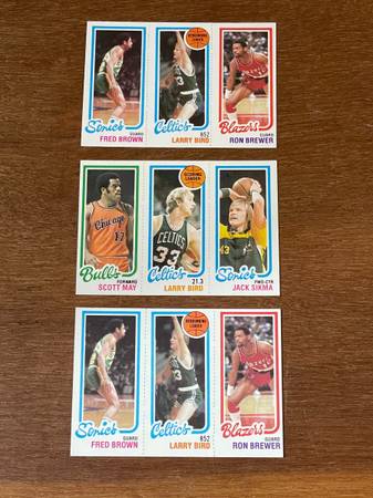 1980 Topps Magic Johnson and Larry Bird Rookie Cards. These are authentic rookie cards (RC's). Estate sale find. Condition is Nr. Mint - Mint. Price is $125 each. The PSA graded 5 Bird RC is $150.