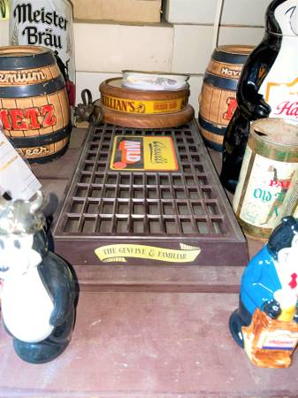 I also have a significant collection of other beer collectibles such as lighted / metal / plastic / cardboard signs, glasses, steins, mugs, posters, mirrors, beer cans, trays, keg ends, bottles, etc. If it advertised beer, I probably have it. Brands include but are not limited to Budweiser / Bud Light / Lite, Miller, Coors, Hamms, Grain Belt, Sierra Nevada, Schlitz, Hensler's, Olympia, Knickerbocker, Pabst Blue Ribbon (PBR), Heineken, etc. - both domestic (USA) and foreign: German / Germany, England / Great Britain / United Kingdom (UK) / Scotland / Ireland, Japan, China, Russia, Italy, etc.