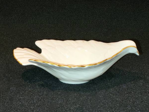 This open Dove shaped Candy Dish is the soft ivory color that Lenox, America's premier china company, is known for, trimmed in 24k gold. The bottom mark says USA in gold so it's probably from the 1980's. Great gift for bird lovers, Lenox collectors or as an ecumenical gift representing the Holy Spirit. It's in excellent condition, no rubs on gold, cracks or chips. The dish is 8” long, 5” wide and 2” tall. Lovely!