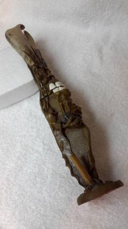 A uniquely grotesque Macumba ritualistic ceramonial statue with hidden knife. The blade is marked Venezia, Brazil, one of centers of the African diaspora Macumba witchcraft and black magic that slaves brought with them from Central and West Africa during the 16th to 19th centuries. Worship of the lower spirits.