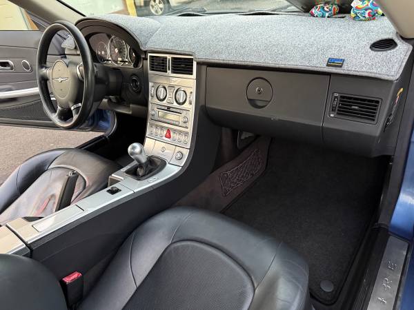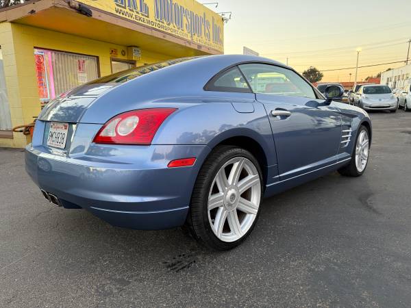 2005 Chrylser Crossfire 2-Door Coupe Limited, 6-speed manual transmission, Blue with Black leather interior, clean title, no accident, all power, AC, dual front/side airbags, cruise control, premium sound system with CD player, premium wheels, 108k miles, excellent condition inside/out, drives perfect, $7,900. For more info please call 510-526-8199 or text 510-220-9378. To see more please visit out website at www.ekemotorsport.com