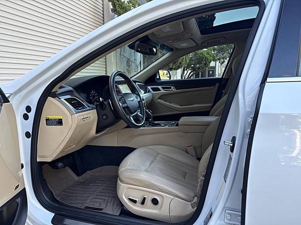 PLEASE CALL TO MAKE AN APPOINTMENT FOR SHOWING… 2015 Hyundai Genesis 3.8L, Only 75K Miles,One Owner,White On Beige Interior!! Loaded,Navigation,Panoramic Roof, Backup Camera, Heated and Ventilated Front Seats,Seats,Blue Tooth,Blue Tooth Audio,Premium Lexicon Sound, BlindSpot Alert, Adaptive Cruise Control,CD Player,Power Windows, Power Door Locks,Power Mirrors,Power Steering, AM/FM/SAT Radio, Air Condition, Dual Front Airbags, Traction Control,Parking Sensors,Paddel Shifters, Clean title,Telescoping Wheel, Automatic Transmission,Runs And Drives Great ******* All advertised prices exclude government fees and taxes; any finance charges; any dealer document preparation charge; and any emission testing charge****Call Us at 925-687-8800