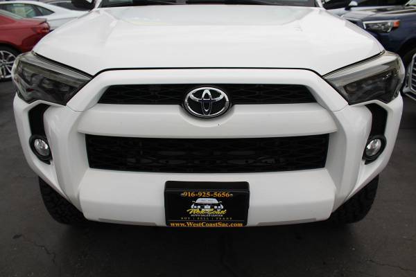 Trim: SR5 suv Mileage: 124k miles Exterior Color: Super White Interior Color: Graphite Engine: 4.0L 6 Cylinders Drive: 4wd Transmission: Automatic VIN: JTEBU5JR1J5539671 Seller Comments: Add some driving pleasure to your day with our Accident Free 2018 Toyota 4Runner SR5 4WD that's presented in Super White! Powered by a 4.0 Liter V6 that offers 270hp paired with a 5 Speed Automatic transmission.This Four Wheel Drive SUV offers impressive handling and can take on just about any road condition while rewarding you with nearly 20mpg on the road! Our SR5 stands out from the crowd with distinct alloy wheels, integrated fog lights, and unique skid plates to set your 4Runner apart! Inside our SR5, you will find comfort and convenience, starting with the SofTexยฎ-trimmed heated front seats, an auto-dimming rearview mirror, and a leather-wrapped steering wheel.Jam out to your favorite songs with the Entune Premium Audio system with integrated Navigation and App Suite, which features a high-resolution touchscreen and available HD/satellite radio for all your audio needs! A 40/20/40 split seat offers versatility and reclines for additional comfort in the rear. This Toyota has top-notch safety features like ABS, a backup camera, airbags, and other advanced safety features.A phenomenal blend of utility, dependability, capability, and bold style, this 4Runner SR5 is an ideal choice for your active lifestyle! Save this Page and Call for Availability.We Know You Will Enjoy Your West Coast Auto Sales Center Test Drive Towards Ownership! Our vehicles all come with an anti-theft protection plan which is an additional $299 and provides up to $5,000 coverage for 3 years.* * See dealer for details