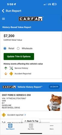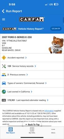 2007 FORD ECONOLINE E250 CARGO VAN 1 OWNER