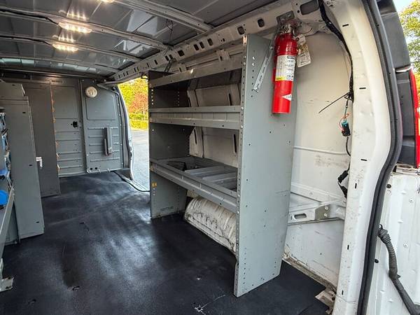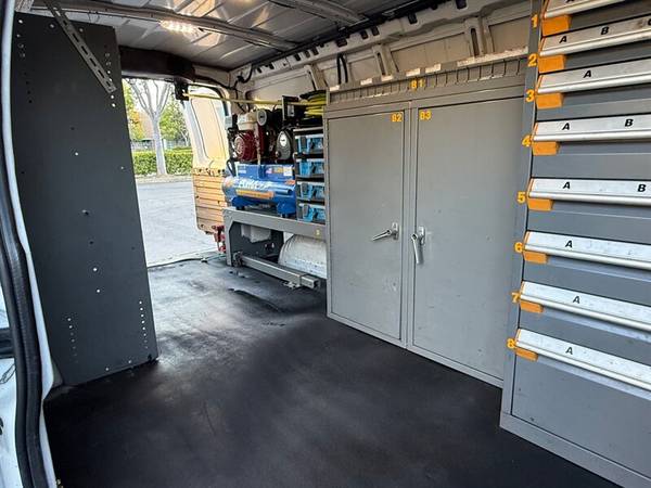 2019 Chevrolet Express 3500 VIN: 1GCZGHFG3K1363668 Stock Number: 1398 Mileage: 108,338 CLEAN TITLE · ONE OWNER Equipped with Commercial Tool Boxes & Air Compressor – ready for work White...