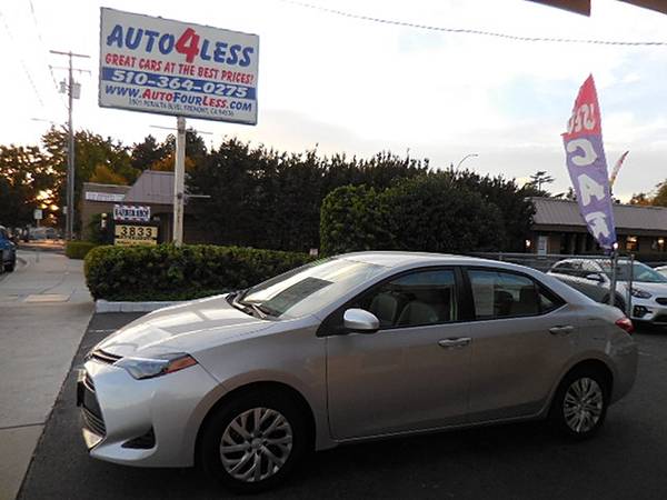 Now offering a delightful one owner 2019 Toyota Corolla LE Sedan 4D with low miles that is Silver in color and that is well equipped with AM/FM Stereo, Bluetooth, Keyless Entry, Cruise Control, Parking Camera and more. Includes a clean Carfax report. This vehicle drives excellent and was meticulously maintained. We have many financing options available and work with ALL types of credit Good Credit, Bad Credit, First Time Buyers, Bankruptcies etc. OK! we can work with your Credit Unions, CUDL and Banks! CALL US TODAY! 510 3640275 Se Habla Espanol.