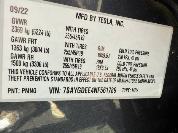 VIN 7SAYGDEE4NF561789