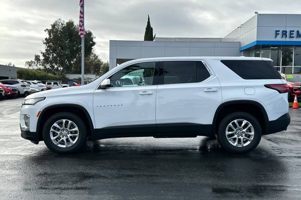 New Price! CARFAX One-Owner. Clean CARFAX. Summit White 2023 Chevrolet Traverse LS w/1FL AWD 9-Speed Automatic 3.6L V6 SIDI VVT CARFAX ONE OWNER, NON-SMOKER, Backup Camera, Bluetooth, Alloy Wheels, Aluminum Wheels, Light Package, Power Mirror Package, Power Package, Traverse LS w/1FL, 4D Sport Utility, 3.6L V6 SIDI VVT, 9-Speed Automatic, AWD, Summit White, Jet Black/Chai w/Premium Cloth Seat Trim, 2-Way Manual Front Passenger Seat Adjuster, 3.49 Axle Ratio, 3rd row seats: split-bench, 4-Wheel Disc Brakes, 6 Speakers, 6-Speaker Audio System Feature, 8-Way Power Driver Seat Adjuster, ABS brakes, Air Conditioning, Alloy wheels, AM/FM radio: SiriusXM, Apple CarPlay/Android Auto, Auto High-beam Headlights, Automatic temperature control, Brake assist, Bumpers: body-color, Compass, Delay-off headlights, Deleted 3 Years of Remote Access, Driver door bin, Driver vanity mirror, Dual front impact airbags, Dual front side impact airbags, Electronic Stability Control, Emergency communication system, Exterior Parking Camera Rear, Four wheel independent suspension, Front Bucket Seats, Front Center Armrest, Front dual zone A/C, Front License Plate Bracket Mounting Package, Front reading lights, Fully automatic headlights, Heated door mirrors, Illuminated entry, Low tire pressure warning, Not Equipped w/Rear Park Assist (060), Occupant sensing airbag, Outside temperature display, Overhead airbag, Overhead console, Panic alarm, Passenger door bin, Passenger vanity mirror, Power door mirrors, Power Driver Lumbar Control, Power driver seat, Power steering, Power windows, Premium Cloth Seat Trim, Radio data system, Radio: Chevrolet Infotainment System AM/FM Stereo, Rear air conditioning, Rear reading lights, Rear window defroster, Rear window wiper, Remote keyless entry, Security system, SiriusXM Radio, Speed control, Speed-sensing steering, Split folding rear seat, Spoiler, Steering wheel mounted audio controls, Tachometer, Telescoping steering wheel, Tilt steering wheel, Traction control, Trip computer, Turn signal indicator mirrors, Variably intermittent wipers, Voltmeter, Wheels: 18" Bright Silver Painted Aluminum.