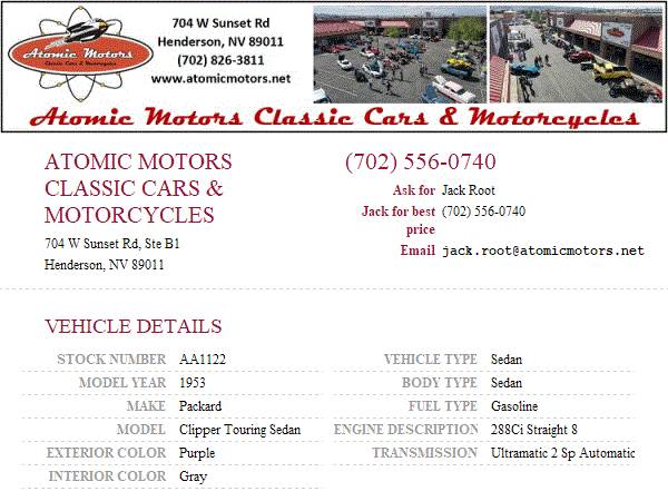 This vehicle is located at Atomic Motors Classic Car Sales and Restorations in Henderson, NV just 20 mins from the fabulous Las Vegas Strip. Come down and see us or call Jack for best price at 702-556-0740 or call our sales dept at 702-826-3811 ext 2 for general information. Additional pictures and videos may be found on our site at www.atomicmotors.net
