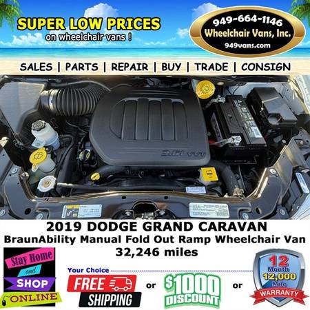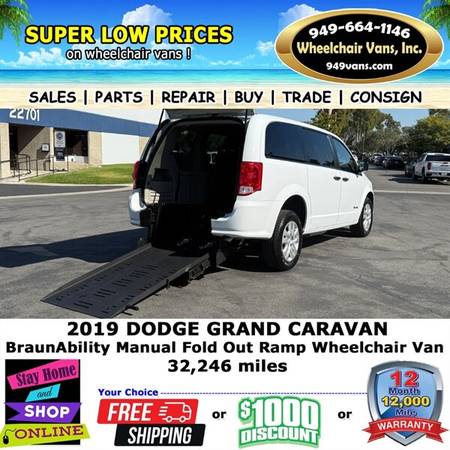 2019 Dodge Grand Caravan Wheelchair Van Minivan Exterior Color: White Knuckle Clear Coat Interior Color: Black/Light Graystone Engine: Pentastar 3.6L Flex Fuel V6 283hp 260ft. lbs. Fuel: Flex-fuel...