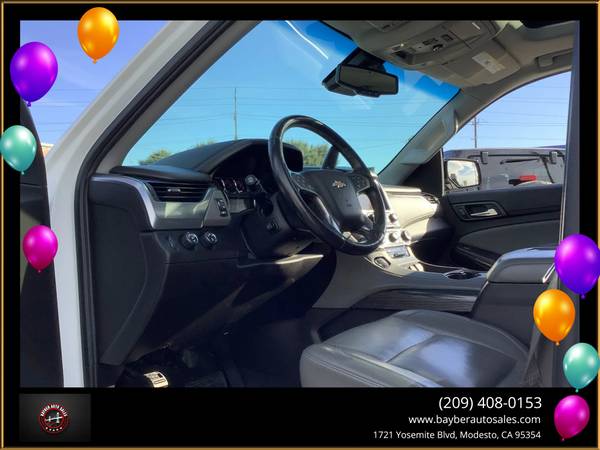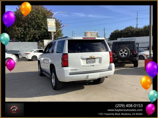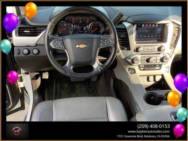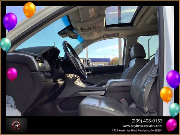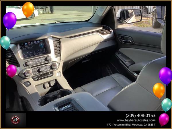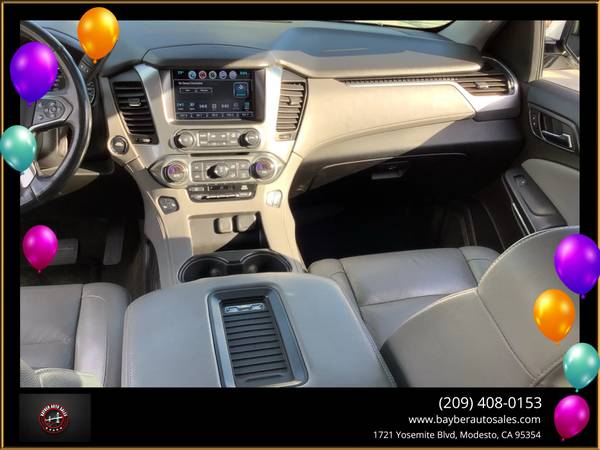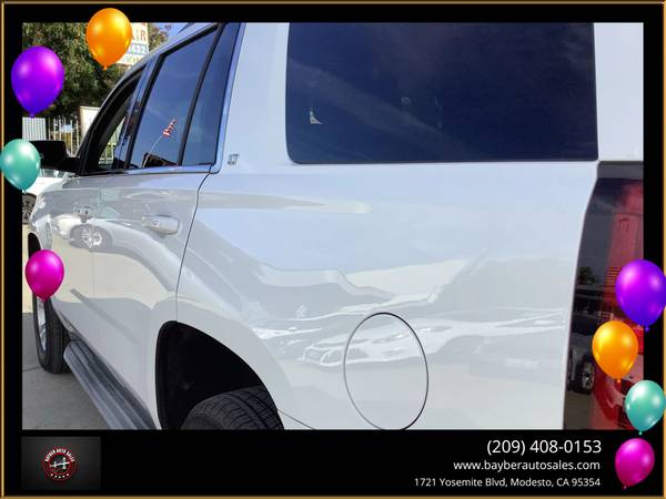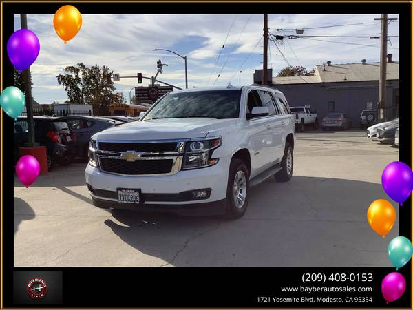 ***2016 CHEVY TAHOE LT***V8 4WD AUTOMATIC***V8 TO V4 CYLINDER GAS SAVING MODE***4 NEW TIRES***LEATHER SEATS***SUNROOF***AUTO SEATS***HEATED SEATS***WIRELESS CHARGER***3 ROWS***BACK UP CAMERA***BLIND SPOT ASSIST***BLUETOOTH***CROSS TRAFFIC ALERT***KEYLESS START***LANE DEPARTURE WARNING***LANE KEEP ASSIST***HANDS FREE LIFTGATE***NAVIGATION***PREMIUM SOUND***POWER PASSENGER SEATS***RAIN SENSING WIPES***REAR AIR CONDITIONING***SEAT MEMORY***LOTS OF TECH AND SAFETY***GREAT FOR FAMILY***GREAT FOR PERSONAL USE***A/C BLOWS COLD***NO ACCIDENTS***FLEX FUEL***SMOOTH RIDE***SPACIOUS VEHICLE***WE BUY CARS***TRADE-INS WELCOME***WE FINANCE***FOR MORE INFO PICTURES AND FREE CAR FAX PLEASE VISIT OUR WEBSITE***1721 YOSEMITE BLVD MODESTO CA 95354***209.408.0153*** We are an Authorized licensed Agency providing auto registration, auto-renewal, auto-transfer, VIN verification out of state transfer. We can also renew register and transfer for bikes, trailers, and boats in Modesto, and surrounding areas. We also buy and sell cars, financing is available on approval of credit we are also auto Brokers. Visit Bayber Auto Sales online at bayberautosales.com to see more pictures and free car fax of this vehicle or call us at 209-408-0153 today to schedule your test drive. Vehicle Disclaimer Extended service Plan And Finance Available. Please bring this ad with you to get the promotional discount price. While we try to make sure that all prices and options posted here are accurate at all times there may be some typographical errors that may appear on the site. If the posted price or options for a particular vehicle or service is incorrect due to typographical or other errors Bayber Auto Sales will endeavor to provide the correct information as soon as the mistake/error is discovered. However this dealership cannot be responsible for such typographical errors. Listed Price excludes government fees and taxes any finance charges any dealer document preparation charges. THIS SALE PRICE EXPIRES THE NEXT DAY OF THE ADD... We are an Authorized licensed Agency providing auto registration auto-renewal auto-transfer VIN verification out of state transfer. We can also renew register and transfer for bikes trailers and boats in Modesto and surrounding areas. We also buy and sell cars financing is available on approval of credit we are also auto Brokers., Vehicle Runs Well, Smooth ride, Must test drive, Rear seat entertainment, Available Satellite Radio, Factory GPS, Title in possession, Single owner, Drives great, Non-smoker owner, New floor mats, Arctic cold a/c, Family friendly