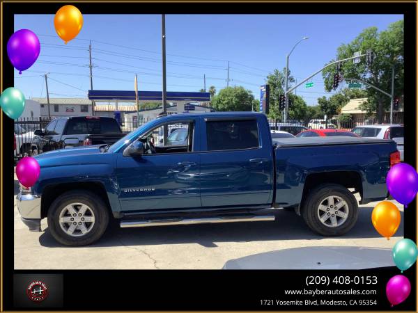 ***2017 CHEVY SILVERADO 1500 LT***V8 HYBRID AUTOMATIC 2WD***CREW CAB***5 AND 3/4 FOOT BED***4 NEW TIRES***A/C BLOWS COLD***BLUETOOTH***BACK UP CAMERA***CRUISE CONTROL***POWER SEATS***CLOTH INTERIOR***TRUCK BED COVER***TAILGATE LIFT ASSIST***KEYLESS ENTRY***HEATED SIDE MIRRORS***REMOTE START***4 BRAND NEW TIRES***SMOG AND SAFETY IS COMPLETE***FINANCING IS AVAILABLE***FIRST TIME BUYERS WELCOME***FOR MORE INFO PICTURES AND FREE CAR FAX PLEASE VISIT OUR WEBSITE***1721 YOSEMITE BLVD MODESTO CA 95354***209.408.0153*** We are an Authorized licensed Agency providing auto registration, auto-renewal, auto-transfer, VIN verification out of state transfer. We can also renew register and transfer for bikes, trailers, and boats in Modesto, and surrounding areas. We also buy and sell cars, financing is available on approval of credit we are also auto Brokers. Visit Bayber Auto Sales online at bayberautosales.com to see more pictures and free car fax of this vehicle or call us at 209-408-0153 today to schedule your test drive. Vehicle Disclaimer Extended service Plan And Finance Available. Please bring this ad with you to get the promotional discount price. While we try to make sure that all prices and options posted here are accurate at all times there may be some typographical errors that may appear on the site. If the posted price or options for a particular vehicle or service is incorrect due to typographical or other errors Bayber Auto Sales will endeavor to provide the correct information as soon as the mistake/error is discovered. However this dealership cannot be responsible for such typographical errors. Listed Price excludes government fees and taxes any finance charges any dealer document preparation charges. THIS SALE PRICE EXPIRES THE NEXT DAY OF THE ADD... *** We are an Authorized licensed Agency providing auto registration auto-renewal auto-transfer VIN verification out of state transfer. We can also renew register and transfer for bikes trailers and boats in Modesto and surrounding areas. We also buy and sell cars financing is available on approval of credit we are also auto Brokers., Non-smoker owner, Vehicle Runs Well, Smooth ride, New tires, Lots of storage, No pets, Arctic cold a/c, Must test drive, Great first ride, Available Satellite Radio, Title in possession, Family friendly, Drives great