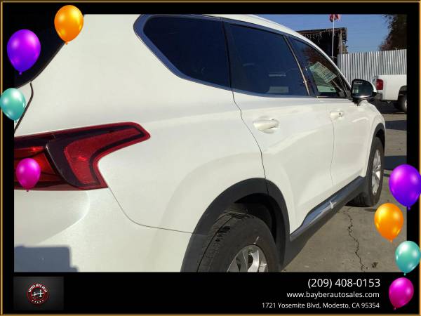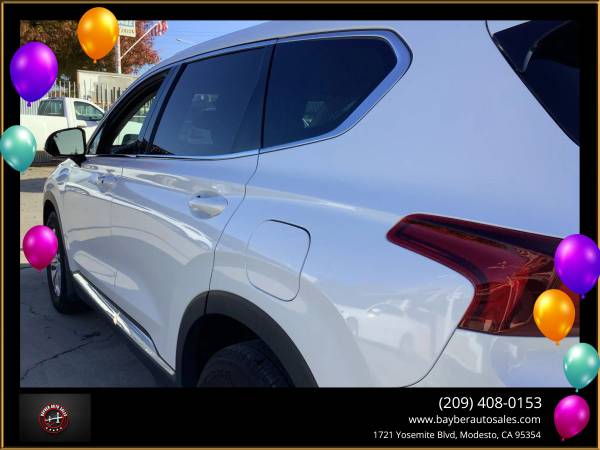 ***2020 HYUNDAI SANTA FE SEL***4 CYLINDER AUTOMATIC FWD***CLOTH INTERIOR***BLUETOOTH***BACK UP CAMERA***HEATED SEATS***POWER SEAT***POWER WINDOWS***POWER MIRRORS***POWER LOCKS***CRUISE CONTROL***AM/FM RADIO***LANE KEEP ASSIST***BLIND SPOT MONITORS***PUSH TO START***ANDROID AUTO***APPLE CARPLAY***STEERING WHEEL CONTROLS******GREAT FOR FIRST TIME BUYERS***GREAT FOR COMMUTING***GREAT GAS MILEAGE***A/C BLOWS COLD***We are an Authorized licensed Agency providing auto registration, auto-renewal, auto-transfer, VIN verification out of state transfer. We can also renew register and transfer for bikes, trailers, and boats in Modesto, and surrounding areas. We also buy and sell cars, financing is available on approval of credit we are also auto Brokers. Visit Bayber Auto Sales online at bayberautosales.com to see more pictures and free car fax of this vehicle or call us at 209-408-0153 today to schedule your test drive. Vehicle Disclaimer Extended service Plan And Finance Available. Please bring this ad with you to get the promotional discount price. Accessories and color may vary. Dealer not responsible for errors or omissions. Vehicles may have unrepaired safety recalls. You can check recall status by VIN at www.safercar.gov. While we try to make sure that all prices and options posted here are accurate at all times there may be some typographical errors that may appear on the site. If the posted price or options for a particular vehicle or service is incorrect due to typographical or other errors Bayber Auto Sales will endeavor to provide the correct information as soon as the mistake/error is discovered. However this dealership cannot be responsible for such typographical errors. Listed Price excludes government fees and taxes any finance charges any dealer document preparation charges. THIS SALE PRICE EXPIRES THE NEXT DAY OF THE AD...