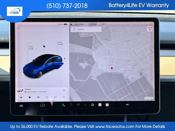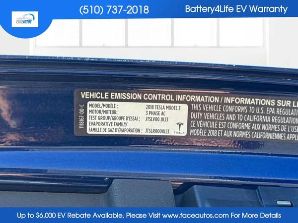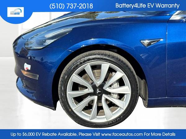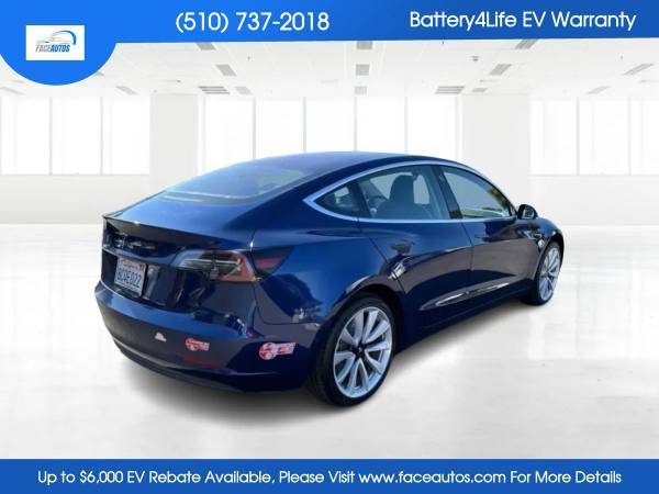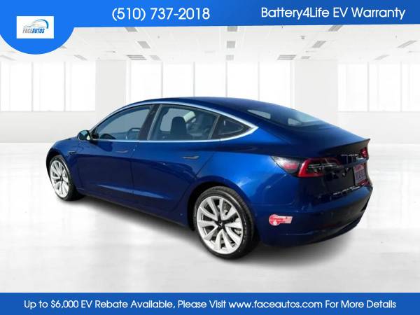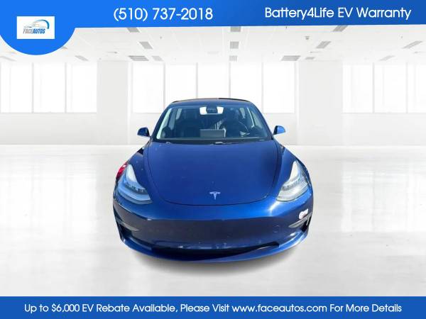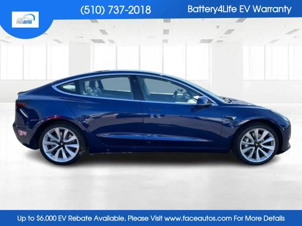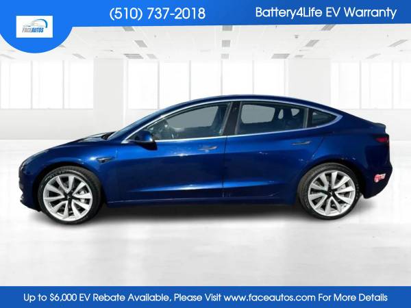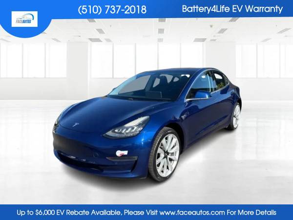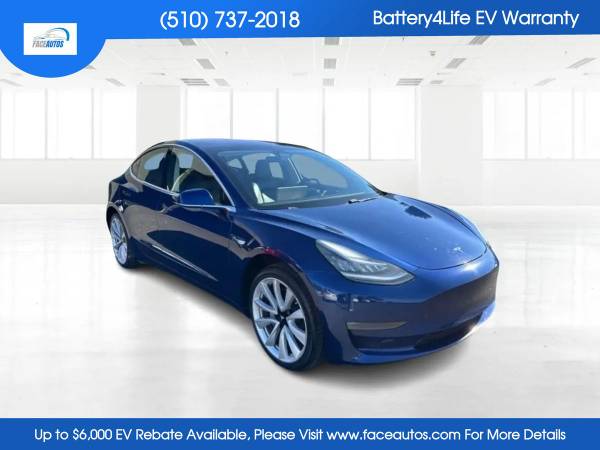 LIFETIME BATTERY WARRANTY AVAILABLE @ $15899, net cost as low as $8999, $6000 rebate availableAn additional $4,000 rebate from PG&E may be available for income-qualified buyers (not all buyers will qualify).Original asking price: $19999 Autopilot, all black Premium Interior, deep blue metallic (PPSB), 19' Sport wheels, long range Rear-Wheel Drive, ,Healthy Battery , no issued detected vehicle rangeFor eligibility requirements, please visit the IRS website: https://www.irs.gov/pub/irsExtra $2,000 instant rebate for Santa Clara County residents (Except San Jose) or San Mateo County, additional PG&E $4,000 rebate for income qualified buyers, IRS Rebate end by 9/30, 'Driving Clean Assistance Program (DCAP) participating Dealership*Safety Done,AS LOW as $299 to drive off! Up to 72 months, 8.99% APR on approved credit!$18.30 for every $1000 borrowed, Available for Prime Credit Buyers, Not available for Uber/ Lyft DriverExtended Warranty available up to 60 mo/100,000 mi., Powertrain Plus, starting as low as $1999. Please click here for more info?? Se Habla Español, Teresa (510) 319-0751??No Licencia?, Matrícula Consular?, ITIN?, Bancarrota?, Reposiciones?, Nuevo en el Trabajo?, 1er Comprador?, No Crédito? -Está Aprobado!We Speak: English, Spanish, & Chinese (Cantonese)????International Driver License?, Foreign License?, Matricula?, Foreign Passport? or CA ID? No problem, We can get you car insurancE???? Easy Financing @www.faceautos.com , First Time buyer, Student Income, ITIN Welcome, SSI , Self - Employed, Uber And Lyft , Matricula ID , 0 Credit Score , Bankruptcy OK, Rate As Low As 8.99% on approved credit!All advertised prices exclude government fees and taxes, any finance charges, any dealer document preparation charge, and any emission testing charge. While we try to make sure that all prices posted here are accurate at all times, we cannot be responsible for typographical and other errors that may appear on the site. We make every effort to provide you the most accurate, up-to-the-minute information; however, it is your responsibility to verify with the Dealer that all details listed are accurate. The dealership is not responsible for typographical, pricing, product information, advertising or shipping
