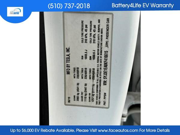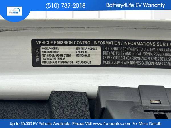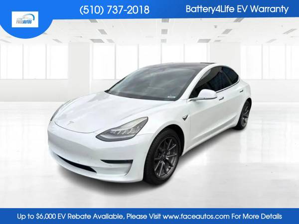 $2,000 instant rebate for qualifying Santa Clara County Residents (SVCE) and San Mateo County Residents (PCE) and Contra Costa, Marin County, Napa County, Solano County Residents (MCE), (not all customers qualify). For San Jose Residents (SJCE), please review the Full Program Guidelines and List of qualifying EVs to verify if you qualify.Additional PG&E $4,000 rebate for income qualified buyers (not all customers qualify), Driving Clean Assistance Program (DCAP) participating Dealership.Safety Done, AS LOW as $299 to drive off! Up to 72 months, 8.99% APR on approved credit!$18.30 for every $1000 borrowed, Available for Prime Credit Buyers, Not available for Uber/ Lyft DriverExtended Warranty available up to 60 mo/100,000 mi., Powertrain Plus, starting as low as $1999. Please click here for more info?? Se Habla Español, Teresa (510) 319-0751??No Licencia?, Matrícula Consular?, ITIN?, Bancarrota?, Reposiciones?, Nuevo en el Trabajo?, 1er Comprador?, No Crédito? -Está Aprobado!We Speak: English, Spanish, & Chinese (Cantonese)????International Driver License?, Foreign License?, Matricula?, Foreign Passport? or CA ID? No problem, We can get you car insurancE???? Easy Financing @www.faceautos.com , First Time buyer, Student Income, ITIN Welcome, SSI , Self - Employed, Uber And Lyft , Matricula ID , 0 Credit Score , Bankruptcy OK, Rate As Low As 8.99% on approved credit!2019 Tesla Model 3, 5YJ3E1EA8KF416615, 138,008, Standard Range Plus Sedan 4D, AC Electric Motor, Single-Speed Fixed Gear, RWD, 4, , Sedan, Electric, , White, Black, , , , 8407 Central Ave Ste 2038, Newark, CA 94560, (510) 737-2018All advertised prices exclude government fees and taxes, any finance charges, any dealer document preparation charge, and any emission testing charge. While we try to make sure that all prices posted here are accurate at all times, we cannot be responsible for typographical and other errors that may appear on the site. We make every effort to provide you the most accurate, up-to-the-minute information; however, it is your responsibility to verify with the Dealer that all details listed are accurate. The dealership is not responsible for typographical, pricing, product information, advertising or shipping